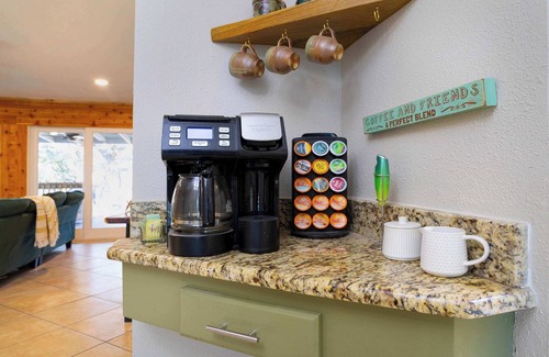 Inside, the fully equipped kitchen makes home-cooked meals a breeze. With stainless steel appliances, dual ovens, stone countertops, and a dedicated coffee station, you’ll have everything you need to prepare a feast for your group. The kitchen table seats four, making it the perfect spot for a casual breakfast before heading out for the day’s adventures. Whether you're enjoying wine tastings, exploring local history, or simply seeking a quiet retreat, this home has all the comforts and amenities to make your stay truly special. Just remember—this is Texas Hill Country, where nature is as wild as it is beautiful! As you embrace the great outdoors, be mindful of the occasional critter, thorny patch, or even something that might slither by.
