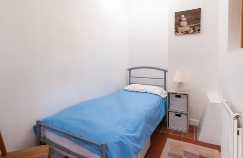 From the kitchen, there are stairs to the first floor where you will discover a lovely bright living room with far reaching countryside views. This room has two double sofas, an electric fire and a TV/DVD. Off this room is a small single room with a single bed.