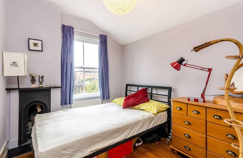 Characterful and cosy environmental city home in a quiet street near a nice park. There are four bedrooms and two bathrooms, and a courtyard garden. The property has been fully refurbished in recent years and has solar panels, a widescreen TV and modern appliances in the old-world kitchen. There is free parking on the street, and the house is 2 minutes from Blythe Hill Fields with a children's playground, ping-pong table and impressive views over London. Located within easy walking distance of 3 rail stations (Honor Oak, Catford and Catford Bridge- London Bridge 12 mins, King's cross/St Pancras 35 minutes and Victoria 40 minutes) and also local shops, pubs, bars and restaurants. Easy access to the River Ravensbourne linear park and cycle route, which leads to the Thames in one direction and Kent in the other. There are many other lovely parks in the vicinity. The house can accommodate up to 8 people (one bedroom has bunk-beds suitable for adults and children).