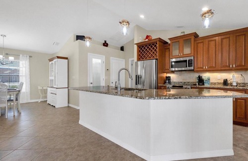 Welcome to our beautiful South Gulf Cove home! 3 BD, 2 BT villa with a private pool, canal view, and outdoor kitchen. Spacious kitchen and integrated stereo system for entertaining. Master BD with lanai and hot tub access. Full amenities including kayaks, washer/dryer, and high-speed internet. No pets allowed. Complimentary toiletries provided. Free parking. Smoke and pet-free. Close to Gulf Coast beaches, golf courses, and dining. Your comfort and safety