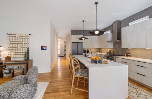 Discover this modern designer retreat, where bold wallpaper, curated furnishings, and statement lighting set the stage for an unforgettable stay in Charlotte. Relax in the private saltwater pool and spa, perfect your short game on the backyard putting green, or gather by the outdoor firepit. Inside, enjoy a chef’s kitchen, spa-like bathrooms, movie lounge, bar with hand-carved Noir Buddha teak stools, full gym, and an executive office. 10-15 mins to Uptown, breweries, dining, and entertainment.