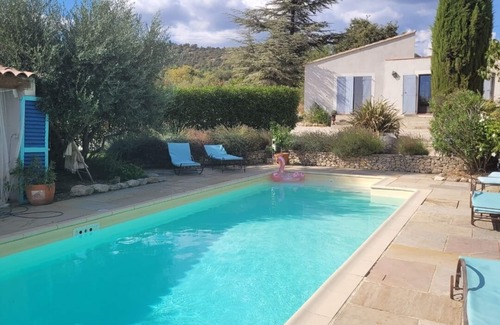 220-m² house in a 2500-m² park with a pool, in the heart of an olive grove, in the south of Luberon with views of the Alpilles to the south and little Luberon to the north. Close to the well-known village of Lourmarin. It can accommodate up to 12 people, ideal for 2 families. There are 6 bedrooms, 3 bathrooms, and a kitchen. Outdoors: two tables for 10 to 12 people and a pool (10x4) with many areas to rest.