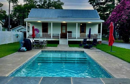 Your cozy cottage in Marksville offers a terrific stay for guests with 1 bedroom featuring 2 queen beds. The charming living room provides an adorable additional space with a full size air mattress for extra comfort. The cottage is equipped with a kitchenette that includes a microwave, refrigerator, hotplates, toaster-oven, and coffee bar!! And don’t forget to enjoy your complementary bottle of wine! Enjoy the pleasant amenities like heating and AC, along with a well-equipped bathroom with a hairdryer and shower. Step outside and enjoy the beautiful pool with water fall. Your home away from home awaits in this lovely retreat. We look forward to welcoming you to our place.