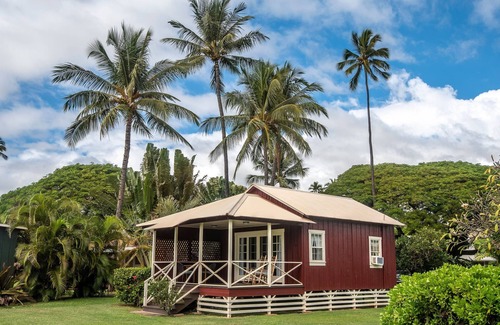 Waimea Plantation Cottages features just 59 private plantation homes on 43 acres. Cottages are set in enclaves with large green lawn areas that roll down to the beach separate the enclaves. Tropical plantings between cottages provide privacy.