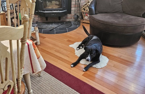 This room is downstairs, by itself. Very private. Has a queen size bed. Our home is in a nice quiet neighborhood. We do have 1 old dog, barks but super friendly. This room has a kitchenette with a sink, own refridgerator, microwave, coffee area, mini roaster/air fryer. Coffee & fresh fruit are provided, plus RO water.