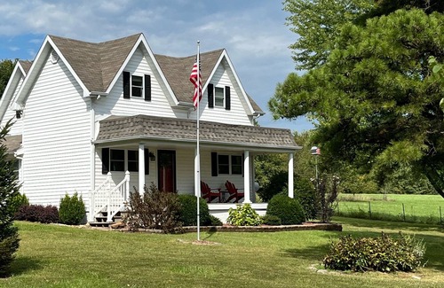 Enjoy a weekend relaxing in the country on this rural 60 acre property. This 1930 farmhouse is a great place to unwind. 15 minutes away from all St. James has to offer- The St. James winery & Public House, several delicious restaurants, homemade ice cream, and small-town charm. There are walking trails throughout and access to the Little Bourbeuse River at the back of the property as well. The views are picturesque with rolling hills behind the barns. Enjoy your morning coffee and sunrise on the front porch and watch the sunset from the upstairs back deck.