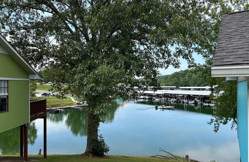 Your Tims Ford Lake adventure begins at this charming two bedroom cabin snuggled in a picturesque cove. Get cozy in your living room featuring a kitchen, comfy sofa and eating area. The kitchen has full size appliances for preparing meals. 3 queen size beds and a full bathroom stocked with linens and towels for your comfort. Enjoy amazing sunsets and starry nights on your private deck. We also offer air conditioning, heating and WiFi. Enjoy a dinner prepared on the grill just steps from your front door while soaking in the tranquil lake views. Want to enjoy some lake fun? You can rent a boat just a short walk down the hill at Tims Ford Marina. We hope you enjoy our amazing property and all Tims Ford Lake has to offer.
