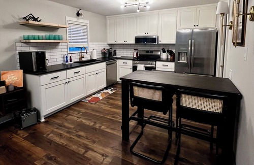 Outside, unwind in the private, spacious backyard, complete with a Blackstone grill, perfect for evening cookouts under the stars. Inside, stay connected with Wi-Fi and enjoy a quaint wet bar or coffee bar setup, adding a special touch to your morning routine or evening wind-down.