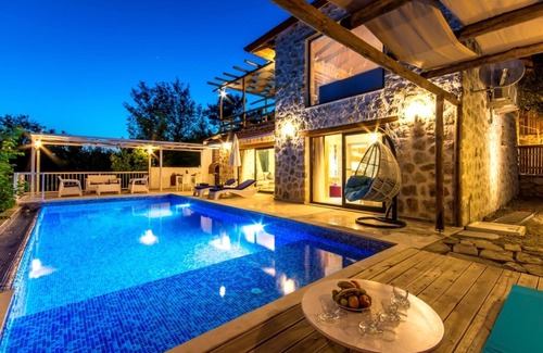 This beautiful newly built villa is located near the heart of Islamlar Village, approximately 10 km from the sophisticated resort town of Kalkan. It has one double and one twin bedroom, both with en-suite bathrooms , and has a capacity of 4 guests. It has been built in the traditional materials of timber and stone, and has been finished to a high standard, with luxurious furniture and fittings.