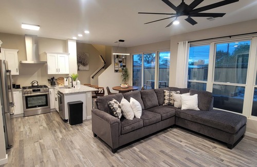 This enjoyable townhome in Albuquerque offers 2 bedrooms with a cozy king, queen with trundle bed setup. With 2.5 bathrooms equipped with all the essentials, guests can relax and unwind after a day of exploring. The living room provides an excellent space to kick back on the sofa bed. Whether you're in town for business or pleasure, this soothing retreat is the perfect spot to call home during your stay, with an oasis backyard. Feel free to reach out to us during your stay - we're happy to suggest local spots to check out.
