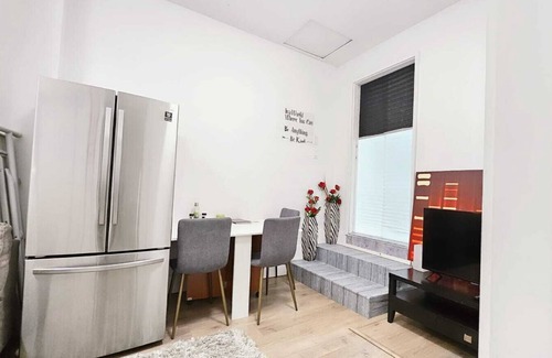 Welcome to our chic 3-bedroom, 1-bath suite, elegantly transformed from a modern living space: