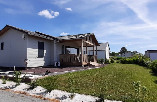 Description: 52m² chalet + 16m² terrace located 120m from the shared swimming pool. 1 bedroom with a double bed (160 x 200 cm) with shower room and toilet