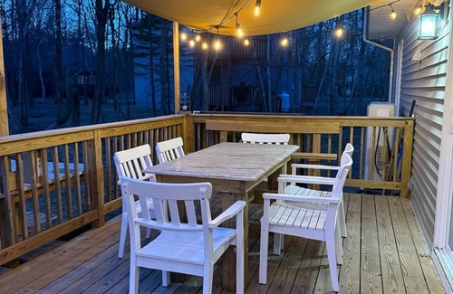 Escape to Albrightsville, PA for a relaxing stay in this family-friendly home! Enjoy the private hot tub, game room, and a fun kids' bunk room. The large yard features a hammock, seating area, plus badminton and volleyball.