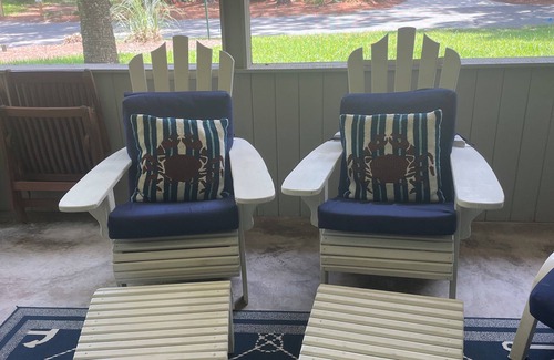 This second row family beach cottage is the perfect home base for your trip to Hilton Head Island. With 3 bedrooms and 3 baths there's plenty of space for all guests. Large screened porch, a cook's kitchen, gas grill and comfortable living areas. One level, no stairs, step-over-shower makes the home perfect for visitors of all ages. Convenient to bike trails, less than a mile from Coligny Plaza, the "downtown" of Hilton Head and just outside the Ocean Gate in to Sea Pines.
