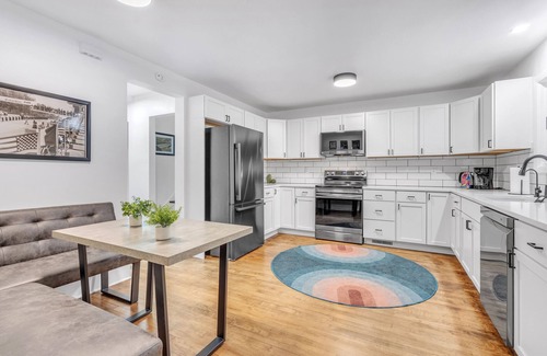 Your cozy getaway awaits in Elkhart Lake at this newly-renovated historic house. Unwind in 3 bedrooms including a spacious king primary, queen with balcony access, bunk with full lower and twin upper plus extra pull-out twin bed, and ability to convert living room couch into additional queen sleeper. Enjoy the convenience of 3 bathrooms equipped with a shower, bathtub, and hair dryer. Plus, unwind in the spacious living room with sectional and large dining table. Fully equipped kitchen with breakfast nook. Front enclosed porch and back open patio for maximum enjoyment regardless of the season. Experience the magic of Elkhart Lake and surrounding attractions including Road America, world-class golf, and lake activities.