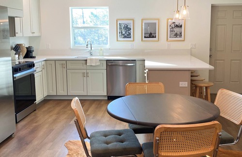 Escape to this stunning 3-bedroom, newly constructed retreat just steps from the Peace River. This home offers the perfect blend of cozy charm and modern elegance, with antique touches paired seamlessly with contemporary finishes. The home’s unique design combines the warmth of vintage details with sleek, updated features for a welcoming, stylish atmosphere throughout. Relax in the stylish bedrooms, enjoy meals in the fully equipped kitchen, or unwind on the private patio while taking in the peaceful atmosphere. Located in a quiet, picturesque area, you'll have easy access to outdoor activities like kayaking and fossil hunting or fishing along the river, shark tooth hunting at nearby beaches, and charming local attractions like local farmers markets. Indulge in a foodies paradise just minutes away in downtown Punta Gorda. Whether you're seeking adventure or a relaxing getaway, this home is the perfect base for your next stay. Enjoy all the comforts of home, with the added bonus of being just moments from the serene beauty of the Peace River. Ideal for families, small groups, or anyone looking for a peaceful retreat in a vibrant, nature-filled setting.
