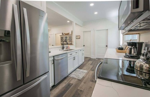 Steps from the Flat Rock Playhouse, at this Charleston-style home you’ll be able to walk to live performances all year round. Hop over to the Village Bakery for pastries (and enjoy them on double patios) before heading out to explore local orchards, downtown Hendersonville and everything the Blue Ridge Mountains have to offer. Perfectly sized for families or a small group, it’s a perfect 4-season homebase for a North Carolina getaway.
