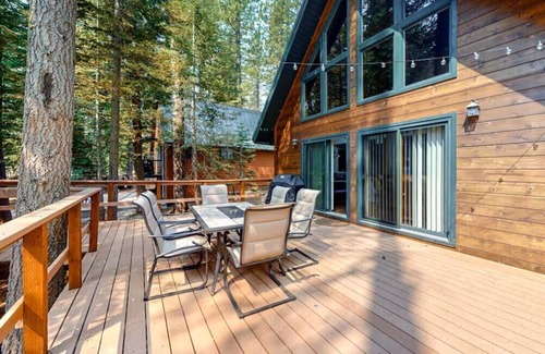 A charming home filled with natural light and mountain cabin charm, escape to nature at this 3-bedroom home. Located in Soda Springs, the oldest operating ski area in California, this home is your gateway to multiple ski resorts! The home welcomes you with an open and social main living space where soaring windows offer beautiful views over the serene nature. A pellet-burning stove is perfect for warming up on chilly winter days while you relax on the plush living room furniture. Prepare meals in the fully equipped kitchen and gather for mealtime at the dining table, or in the summer months at the outdoor table located on the spacious deck.