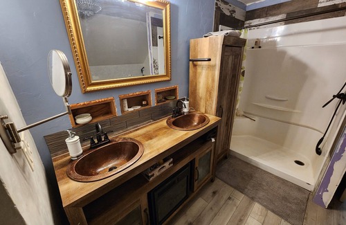 This serene farmhouse in Peshtigo offers a pleasant retreat for guests. With 4 cozy bedrooms including 2 queen beds, 1 king bed, and 1 bunk bed, there's plenty of space for everyone to unwind. The 2 bathrooms are equipped with a hair dryer and shower for added convenience. Relax in the living room with a comfy futon or enjoy the cool breeze outside. We look forward to hosting you at our place.