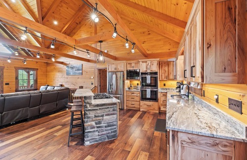 Escape to this stunning, spacious cabin nestled in the heart of Hocking Hills. Perfect for family gatherings, weekend getaways, and more. This cabin features four bedrooms and a loft, a movie theater, a hot tub, a fire pit, a game room, three full bathrooms, a fully stocked kitchen, indoor and outdoor dining, two grills, and two gathering spaces. The cabin sleeps 12.
