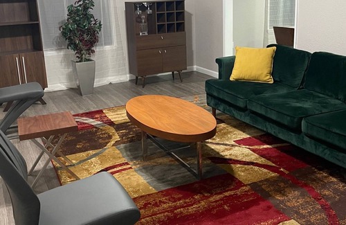Enjoy the elegance of a by-gone era while staying in this Mid-century home. Beautifully decorated and featuring a bar cabinet in a entertainment room and period furniture. Natural sunlight illuminates every single space in this 7 bedroom and 4 bathroom house making it warm and inviting to large groups, family getaways and corporate retreats.