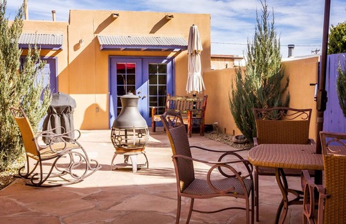 Beautiful, private casita one block from the plaza. Historic charm with modern conveniences. Perfect for quiet retreat. Fenced flagstone patio in back yard fully equipped with gas grill, outdoor fireplace, outdoor dining area and french doors opening from the house. Large front yard fully enclosed. Full front porch creates shade for rocking chair. This house is peaceful but just steps from the fiestas and activities on the historical Mesilla Plaza. Shops and restaurants, an independent film theatre and a bookstore within two blocks. Boutique wine bar with a lovely shaded patio and live music less than a block away. The house is fully equipped with all amenities including everything for the novice chef. Air conditioned for summer comfort.