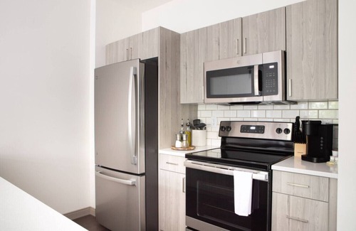 Self check-in, high-speed Wifi, dedicated workspace, private balcony, in-unit laundry, smart TV with Chromecast, Keurig, conference room, and fitness center