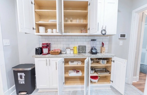 Unwind in Atlanta at this fantastic house. Peaceful and private home with cozy feel in desirable Grove Park Neighborhood! Live life in this sleek, elegant designed 2BR, 1BA home. This home features a spacious living area, new kitchen with granite counter tops, new appliances and natural lighting throughout. Fully stocked kitchen with everything you need including Keurig for your coffee lovers. Near the Beltline and Atlanta's Westside Park. Minutes to downtown ATL, West Midtown, West End, Centennial Park & Mercedes Benz Stadium. Two cozy bedrooms - one with a king bed and the other with a queen bed, plus a spacious living room with office space, this tranquil retreat is perfect for small groups of guests. Enjoy the pleasant ambiance of this home, complete with WiFi, heating, iron, and AC. It's easy to see why you'll be able to unwind at our place.