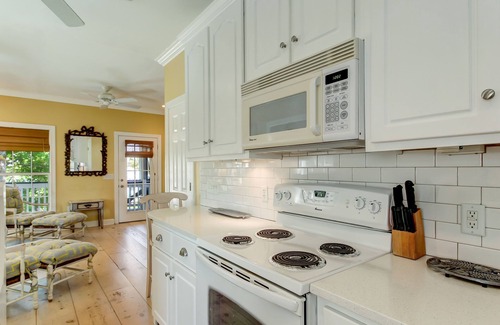 Enjoy the full kitchen with a refrigerator, dishwasher, stove, oven, microwave and small appliances. Bring your groceries, and use the ample storage in the kitchen to stay organized. Whip up a gourmet meal or keep it simple as you enjoy Tybee Island vacation homes.