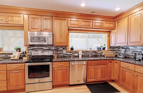 We want our guests to easily enjoy preparing meals at home. Therefore, our homes have uncommonly well-stocked kitchens. Not just the things you’d expect like microwave, dishwasher, and basic dishes, but plenty of dishes, drinking glasses, flatware, pots & pans, cooking utensils, and other tools and small appliances.