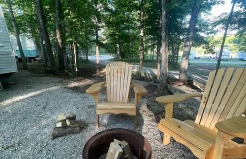 These Glamping RVs are very spacious and fully equipped with new luxury mattresses, lanterns, seating areas and are the perfect place to get a good night's rest after a long day of activity. Outside will have a cozy spot for a private campfire while you sit on nice Muskoka chairs. The Rvs are equipped with a private bathroom and there is a shared bathroom on site also.