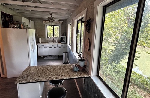 This cabin features a large deck overlooking the river. Perfect for relaxing with a book or grilling for family and friends. Bring your cornhole boards for some fun in the spacious yard and roast some marshmallows in the fire pit. Wood is available upon request. FISHERMEN, this is a perfect place to stay after a day of fishing! The public boat ramp is located just 7 miles from the cabin!