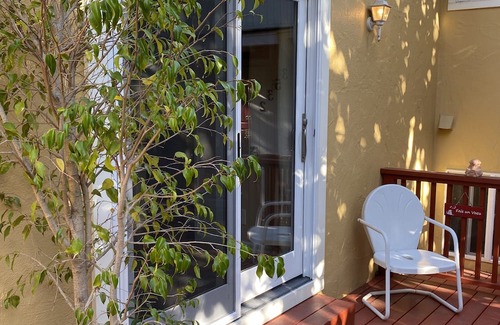 Our casita sits in a Mediterranean microclimate, warmed by the sun and the heat of the bluff across the road. You'll enjoy a mild temperature range most months. When it's hot inland, you'll get to experience - and give thanks for - our marine layer, with fog coming in at night and in the morning. It's Nature's best air conditioner.