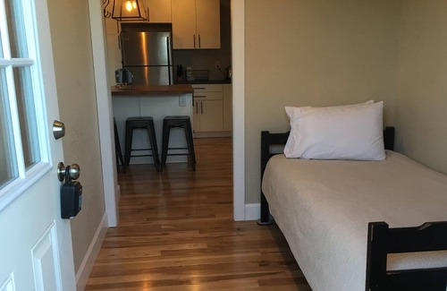 Adorable Carriage House retreat or temporary corporate housing in a beautiful, safe, quiet, central Fort Collins neighborhood. Close to everything Fort Collins has to offer, yet far enough from the raucous of downtown to retreat and sleep in peace. Newly remodeled with hickory hardwood floors throughout, barn doors and classic details. This two bedroom abode offers one queen memory foam bed and one twin bed with a pull out trundle bed. There is also a queen sofa bed with an upgraded memory foam mattress. This apartment is 600 square feet. It can sleep 6 but it will be cozy.