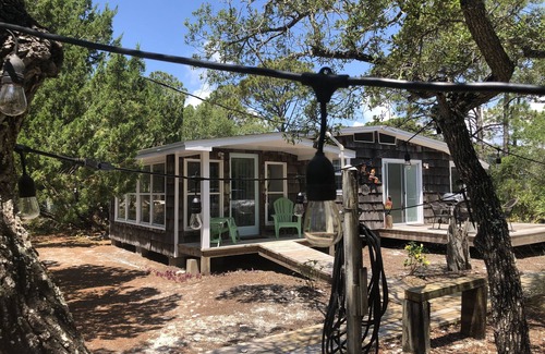 Charming coastal cottage that offers a short walk to the beach and bay. Located on a secluded corner lot that offers a large outdoor living space and lots of privacy.