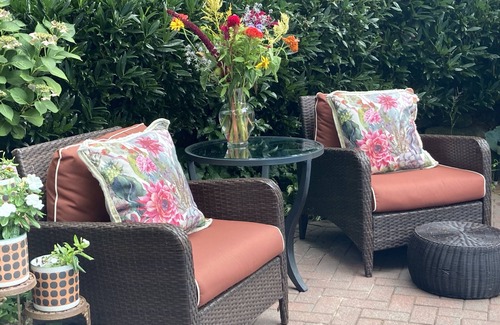 Charming, completely renovated, two bedroom cottage in a quiet shore community; resort-like gardens with saltwater pool, walk to beach, minutes from Port Jefferson Village and Stony Brook University, Brookhaven National Lab, east end wineries. Sixty miles from New York City. A lovely, pristine 2 bedroom, one bath home with office, sunroom, living room, eat-in kitchen, exercise space, loft, new appliances, washer/dryer. Beautiful yard with deck and patios, pool house, outdoor shower. A beautiful private retreat environment. (Pool closed for season).