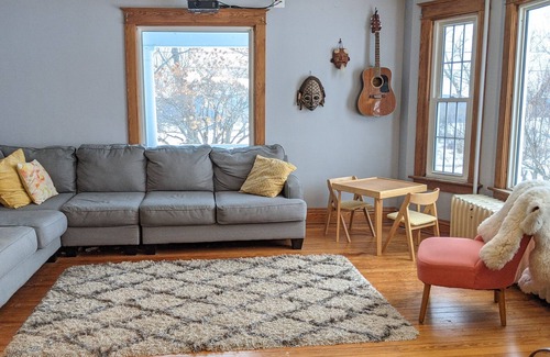 Enjoy country living in our four bedroom, 1913 Sears Craftsman Home! We are situated on a half acre, in beautiful Randolph Center, just downhill from the VAST trail, a perfect spot for outdoor enthusiasts! Enjoy endless walking trails and sweeping mountain views during your stay! High speed internet and a Chromecast enabled projector offer entertainment access and the wood burning stove is a cozy addition. Relax in the newly remodeled upstairs bathroom, in the clawfoot tub. This is a great place for families or remote workers looking for a peaceful getaway. The yard features a perennial garden with porch swing, large sandbox and swing, and several planters for vegetable gardening. You will love sitting on the front/back porches and having meals or just observing nature. On the main floor of our home, we have a living room, dining room, bathroom with tub/shower, and kitchen. We have a new washer/dryer. You will have access to dishes, cooking utensils, blender, toaster, etc during your stay. In the dining room we have a wood stove/fireplace, which we use as our primary source of heat and an electronic piano. As guests, you will have full access to our wood pile to use for as many wood fires or outdoor bonfires as you’d like. The home also uses radiant heating, and we provide a space heater for extra chilly nights. The main floor is a great gathering space for a group of friends or families! The main floor includes a dining room, living room, kitchen, bathroom, and coat room. guests have access to the china hutch, and craft/board game cabinet. we provide the supplies you need for getting a fire going in the wood stove. You will also have access to the entire second floor, which features four bedrooms and a bathroom. Remote workers can work at the desk in one of the bedrooms or downstairs in the dining room. If you love farm fresh goods, you will love our community! We are next door to an active dairy that produces artisanal cheeses. We are an eight minute drive from I-89, giving you easy access to many recreational and tourist hot spots, including Quechee Gorge, Woodstock, and Montpelier. Downtown Randolph is about 15 minutes away, where you can access grocery stores, restaurants, and Gifford Medical Center. We are within an hour of many top rated ski areas, such as Killington and Stowe.