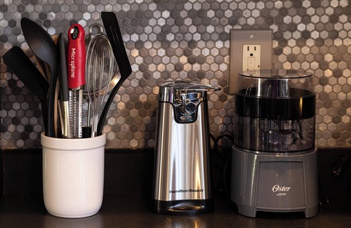 On the main floor, you’ll find cozy living space and kitchen along with one bedroom. The main level is open and modern, featuring a wood-burning fireplace, smart TV, and a large sofa and side chairs. The sofa is a sleeper bed, offering additional sleeping arrangements. The open kitchen design ensures that everyone can socialize together without feeling separated. On the second floor, the primary bedroom features a king-sized bed and ensuite bathroom. Bed linens and towels are provided for the max occupancy of the home (Carol's Cottage has a max occupancy of 6). Laundry is available in the home during your stay, located upstairs.