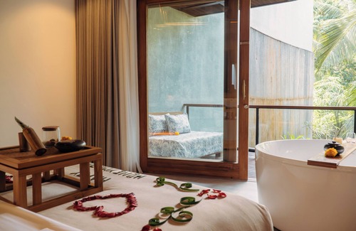 Discover the beauty of Bali from this 1-bedroom resort. Wake up in a room with a comfy king bed, and pamper yourself in the bathroom equipped with a bathtub and shower. Enjoy the superb AC, hair dryer, and WiFi amenities provided. Fall in love with Bali and enjoy the magic it has to offer. Resort's grand suite forest view with a captivating view uitable for honeymoons and family getaways in Ubud, Bali. Sunlight dancing on the surface of your private infinity pool, framed by the verdant embrace of Ubud's, simply relax and enjoy your favorite tunes with the in-villa.