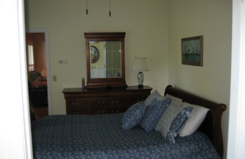 A peaceful setting on a beautiful private lake makes this house a hidden gem . The smaller of our two guest houses this home offers the ultimate in privacy and tranquility. French doors from both the bedroom and sitting room open onto a private patio overlooking a lake and beautiful woodlands. Deer, turkey and a large variety of waterfowl are constant visitors to this little corner of paradise. Enjoy coffee every morning in your private corner with nature.