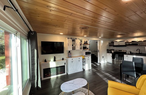 Cozy getaway house in Fish Creek offers a serene escape for 4 guests. This new beautiful 1-bedroom retreat features two queen beds, a fully equipped kitchen, washer/dryer tower, WiFi, AC/Heating, two large smart TVs (65” and 50”) with 500 LiveTV channels, two fireplaces and everything else you need for a comfortable stay. Perfect space for the family of four, two couples, or four friends. Whether you're looking to relax in the peaceful surroundings or venture out to nearby attractions, this cool hideaway is the perfect home base for your getaway. Feel free to reach out to us during your stay - we're happy to suggest local spots to check out. Nearby - Lautenbach's Orchards & Winery, Settlement shops, and Farmer's Market.