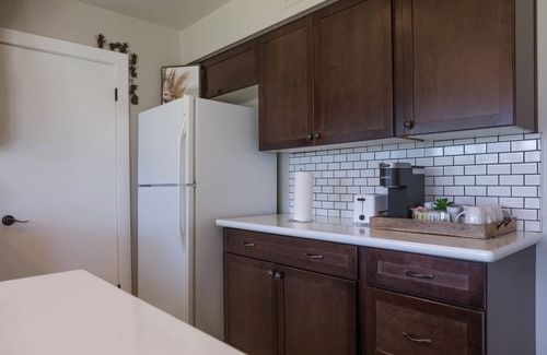 The 3 bedroom house is 1120 square feet and features updated furnishings and a well manicured backyard with partial covered patio, putting green, corn hole court, and patio seating with a firepit. All the essentials are provided such as sheets, blankets, towels, bath and shower toiletries and laundry supplies for your entire group. There is off-street parking available for 2 vehicles. There are no spaces for trailer, camper or RV parking available.