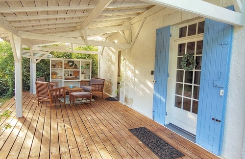 At the heart of the Landes de Gascogne National Park, between forest and ocean, this charming house is located in the center of a small village called Lue.