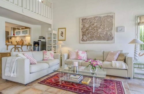 Charming and cozy house between Biot and Valbonne. Large garden with barbecue, dining table, sun beds, sofa and private (heated) pool. 3 bedrooms; 2 with shared bathroom + loft with bathroom. Additional toilet. Fully equipped kitchen, large dining table with a view to the garden. Cozy sofa group with fireplace, TV/Chromecast. Parking for 2 cars. The house is located in a residence called Val d'Azur - with a large communal pool and 3 tennis courts. Security 24/7. The address is: 120 Allée des Palmiers, 06270 Villeneuve-Loubet
