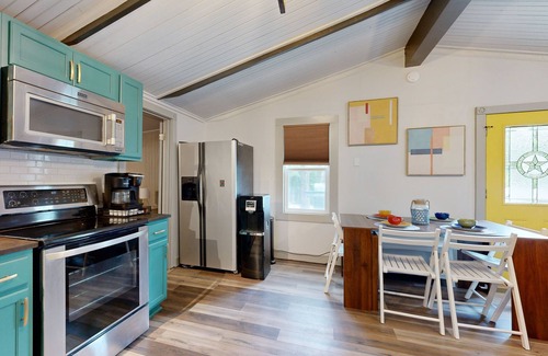 Each room is equipped with its own window AC unit and space heater, ensuring your comfort year-round. The house is also equipped with full arc fault and ground fault protection, along with smoke detectors, a fire extinguisher, and a first aid kit for added safety.