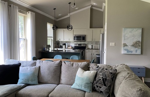 This is our personal getaway, so we have tried to include all the comforts of home. The living room has a comfortable couch, large TV and great views of the lake. There is a dining table that will seat 6. It's a great place for the kids to swim or kayak. The kitchen is well furnished, and there is a laundry room with a washer and dryer.