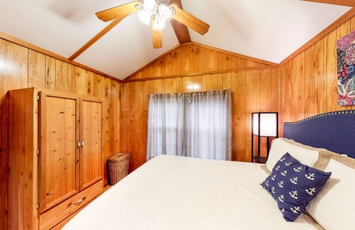 Located on a two-acre tract (shared with one other cabin), this charming vacation property is the perfect spot for your next lake getaway! You can even rent it together with the other cabin for a group of up to eight. Included with the cabin is a private dock with power to plug in your boat!