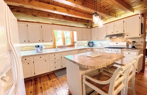 This charming log home features warm heart pine floors that greet you as you walk through the front door. The majestic floors continue throughout the main level, and the living room is centered on a massive stone wood burning fireplace. The kitchen is fully stocked and ready for your next family gathering. In the kitchen you will find; pots and pans, as well as dinnerware, flatware and servewear (service for 12). The kitchen appliances include a microwave, full-size fridge with water dispenser and ice maker, gas oven with 5 burner cook top, dishwasher, toaster, air fryer, blender, crock pot and coffee maker. Being a large family ourselves our hope was to make this home as accommodating for you and your family as possible, we understand and appreciate the importance of family time. There is also a piano and game room located just between the kitchen and living spaces. You can cookout on the rear deck’s propane Weber grill. There is also (2) all weather dining tables and (4) all weather rocking chairs, to sit and enjoy the sound of birds chirping and a view of the lake. Upstairs you will find 4 bedrooms and 2 bathrooms, including the primary bed and bath. All of the bedrooms have a view of the lake through the windows. In the basement you will find a large rec room with sectional sofa and large 75" TV as well as custom built-ins which play host to a cozy pocket office for those needing to be productive while on still on vacation. The rear of the home is its reason for being. You have a covered patio area with a full-size ping pong table and porch swing. Enjoy a delicious s’more at the natural firepit just off the rear. The organic walkway leads you down to the most beautiful cove on Lake Norman. The cove is deep yet cozy, and there is plenty of room to tie off to the multi-tier dock. The kids are sure to love the diving board for hours of lake fun and creating memories! You will feel like you are worlds away from it all, but it actuality you are just 3 miles to I-77 and within a couple miles of over a dozen delivery restaurants and grocery options. This truly is a gem nestled among the best of both worlds.