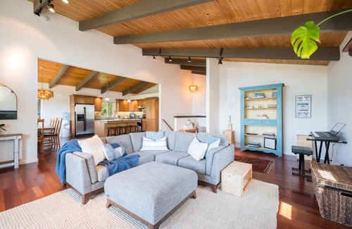3 bedroom, 3 bathroom, 2- level, open concept living space with views up the coast towards Hearst Castle. This charming home is located in the Park Hill neighborhood. Situated on top of the road with views of the mountains and sea. The open concept living space is located on the upper level along with the King bed primary bedroom. The lower level has the queen bedroom and a third bedroom with two twin beds, laundry room and bathroom.