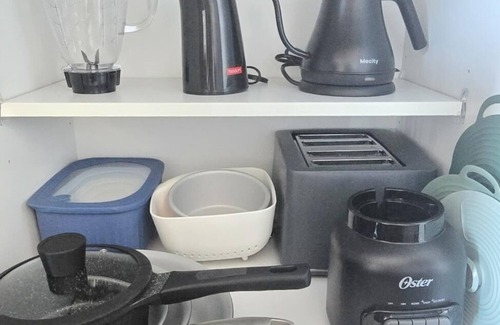 Your cozy getaway awaits in Denver at this wonderful apartment. The bathroom is stocked with a hairdryer, shower, and toiletries, allowing guests to freshen up after a day of exploring. The additional living space includes a queen bed and two portable cots with 6-inch mattresses, ensuring a great night's sleep. We hope you enjoy your stay at our apartment!
